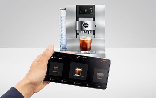 J.O.E.® ist kompatibel mit allen Vollautomaten, die mit Smart Connect oder Wi-Fi Connect ausgestattet sind. Ihr Device verbindet sich dementsprechend über Bluetooth (Smart Connect) oder WLAN (Wi-Fi Connect) mit dem Vollautomaten. Mit Wi-Fi Connect ausgestattete Kaffeevollautomaten von JURA ermöglichen den gleichzeitigen Zugriff von mehreren Devices.