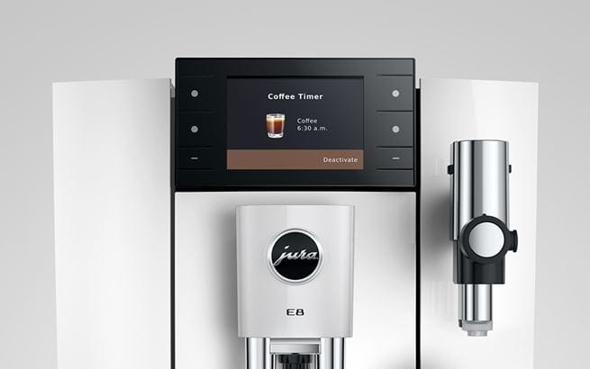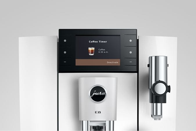 The E8 offers more convenience than ever before. Thanks to the Coffee Timer and J.O.E.®, your morning coffee is ready as soon as you get up – the perfect way to start the day. The Quality Assistant ensures more resource-efficient maintenance of the E8 and guarantees maximum hygiene for maximum deliciousness. Coffee enthusiasts can easily navigate through the different worlds of indulgence, which are colour-coded for simplicity, on the 3.5-inch colour display with side buttons.